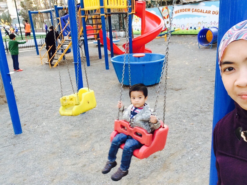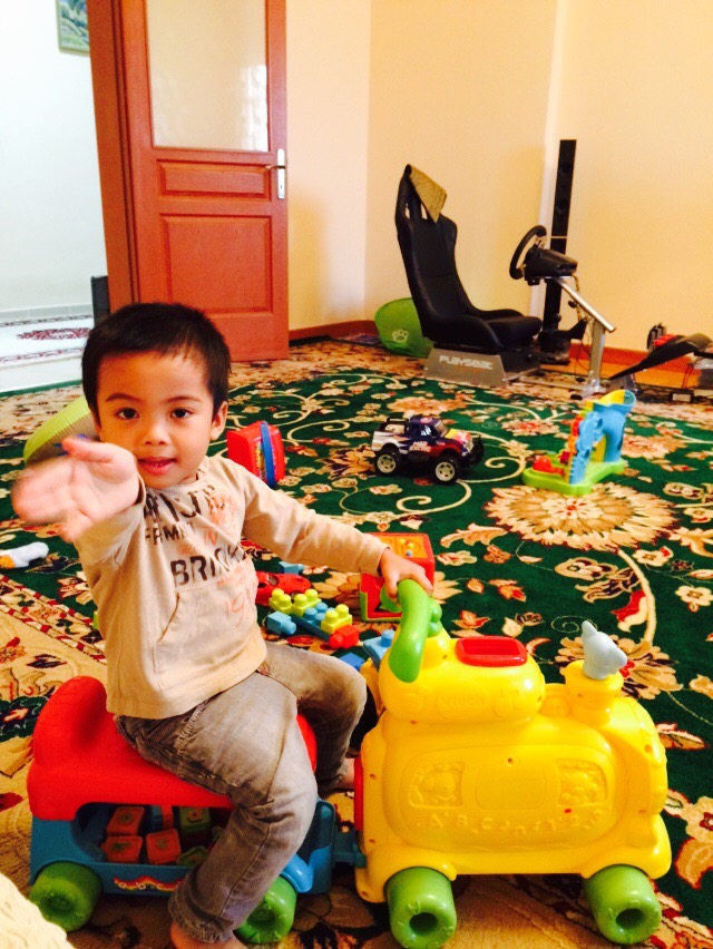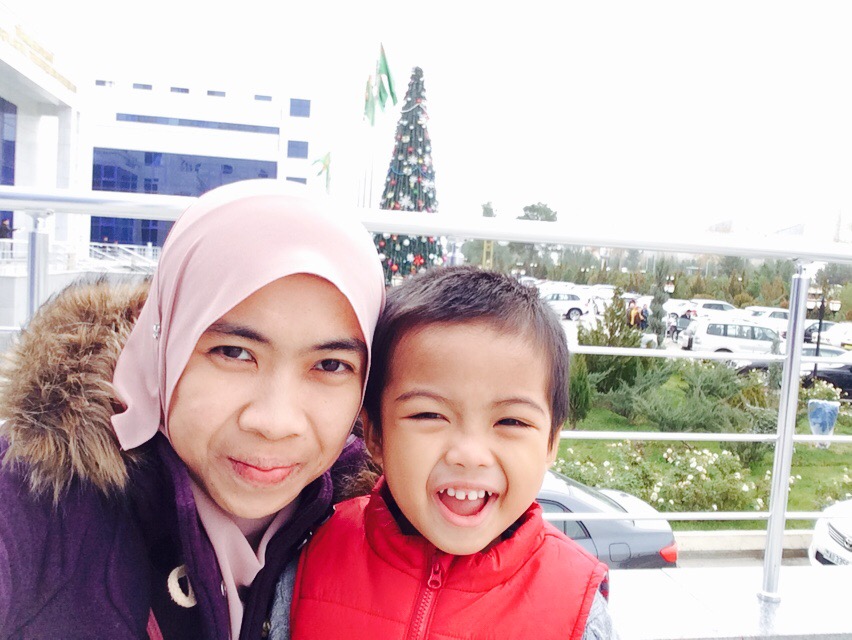 Nak bercerita pasal ‘Aaqil pulak, sepanjang 2 minggu ni dia happy sangat. Kalau bangun pagi tu memang tak nangis pun sebab happy ummi walid cuti dan dia takyah bangun pegi skool. Atau mungkin sebab duk ‘rumah walid’ kat Ashgabat. I don’t think he remembers. Tapi dia tau ni rumah walid sebab selalu kalau skype dengan walid, walid akan tolong mainkan toys dia kat sana. Ada sekotak toys ‘Aaqil yang kami tak bawak balik Malaysia so itulah yang my husband main utk dia. Few wks sebelum fly tu memang dah bagitau dia nanti ‘Aaqil naik aeroplane, gi rumah walid ada toys. So bila sampai Ashgabat tu dia happy kembang kempis hidung sebab nak bertentang mata dengan toys yang walid dia selalu ‘tolong’ main tu. Hiihi